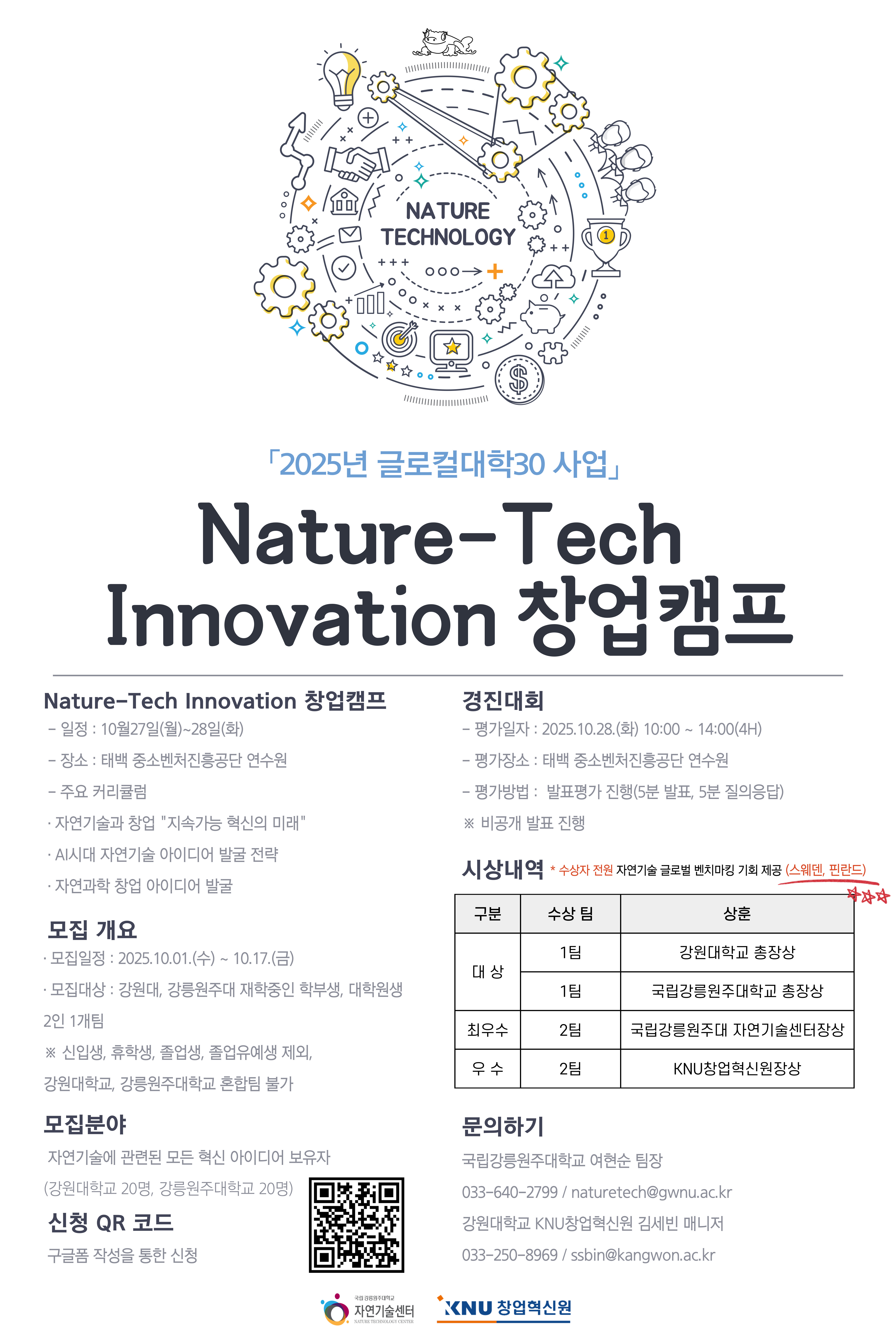 [KNU창업혁신원] 2025 글로컬대학30 사업 Nature-Tech Innovation 창업캠프 참가자 모집 안내