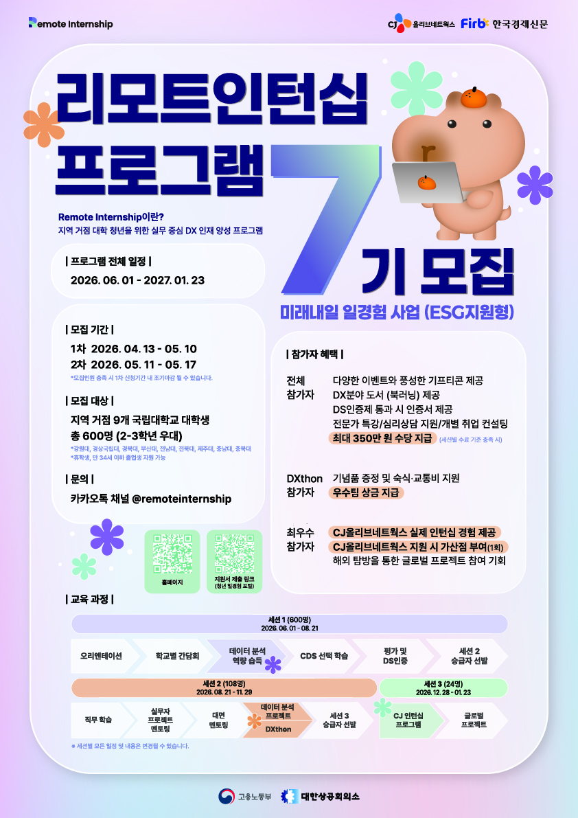 미래내일 일경험 지원사업(ESG형) 'Remote Internship' 프로그램 신청 안내