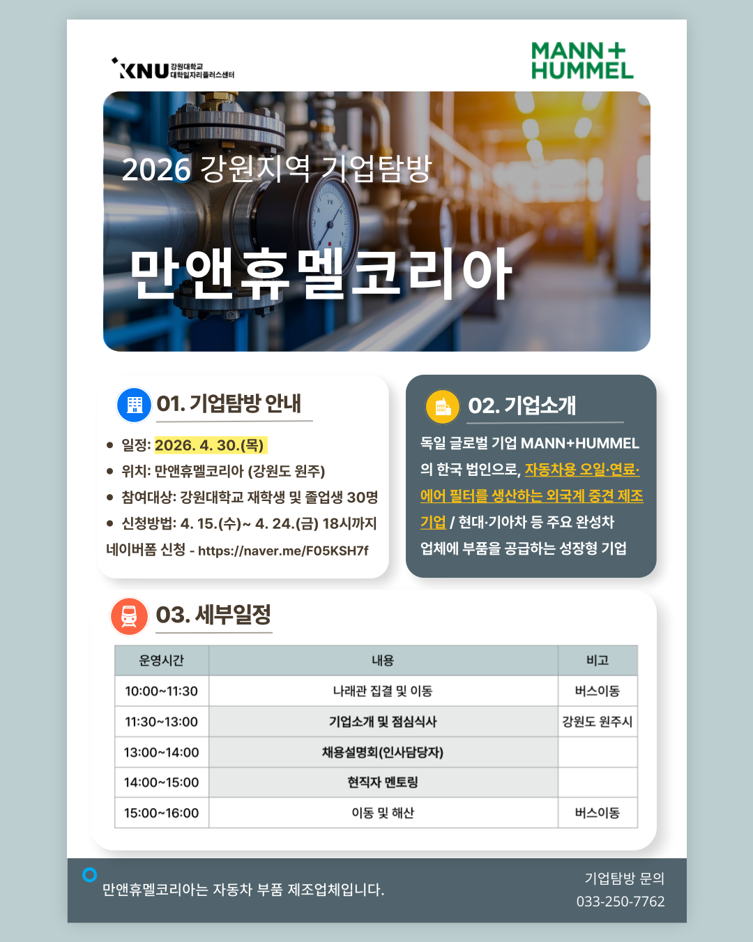 기업탐방 프로그램 안내- 만앤휴멜코리아