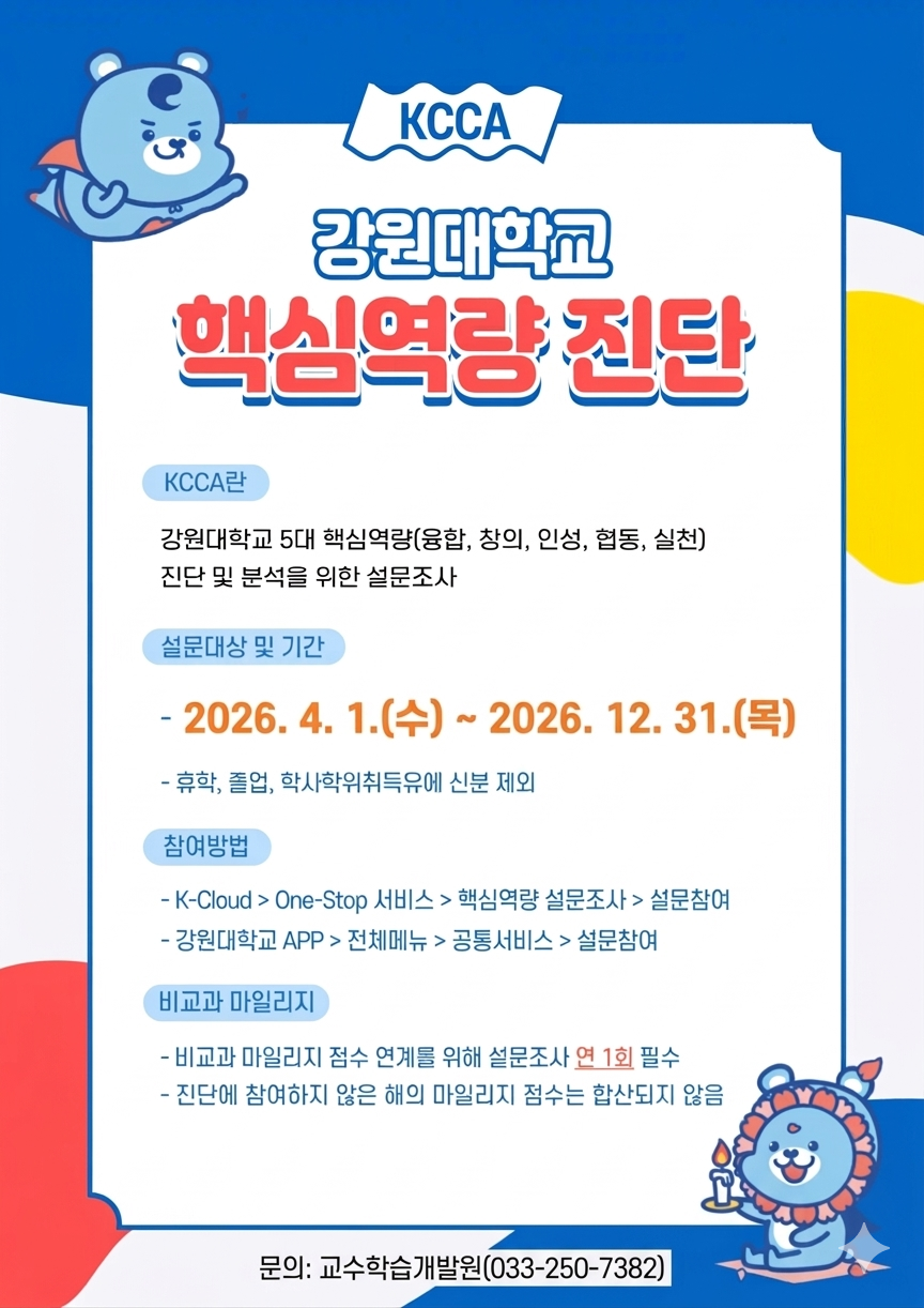 2026학년도 강원대학교 재학생(1~4학년) 핵심역량 진단(KCCA) 안내